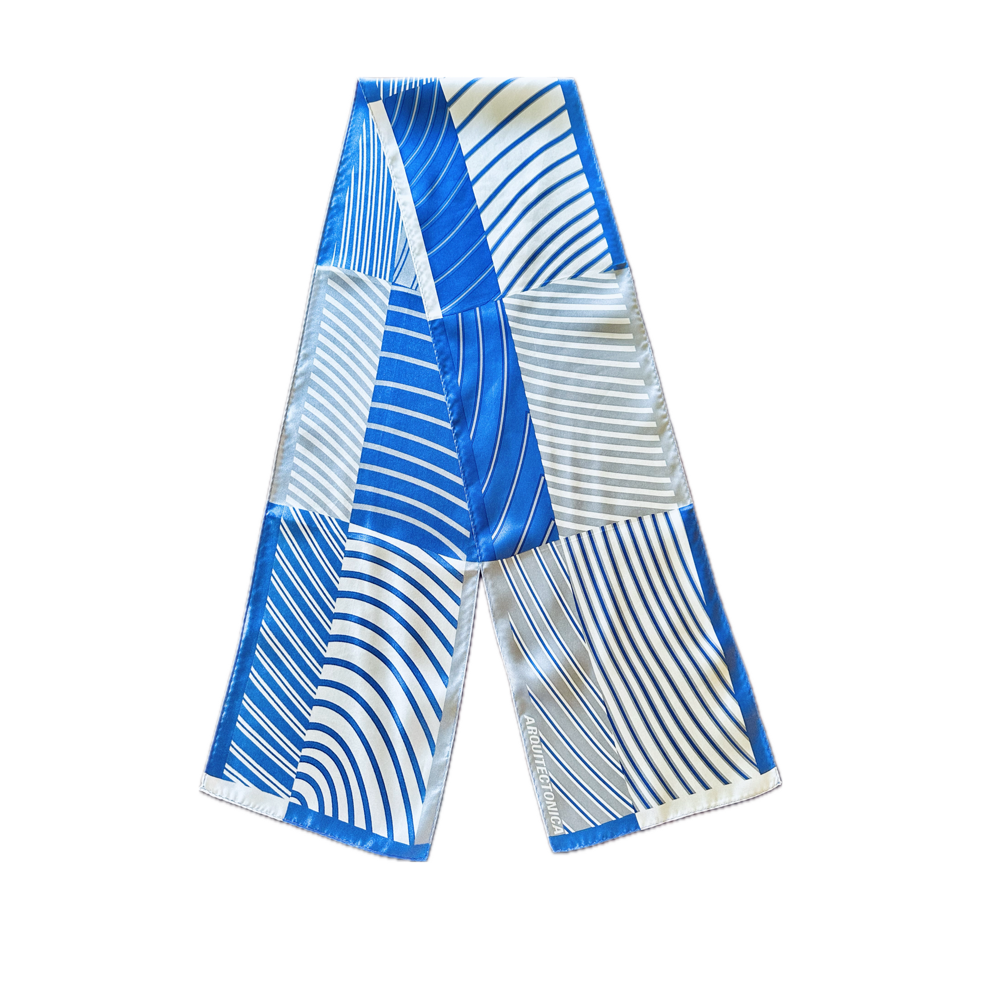 Block Striped Silk Scarf Designed by Laurinda Spear in Blue, Royal Blue, Dark Grey and Light Grey