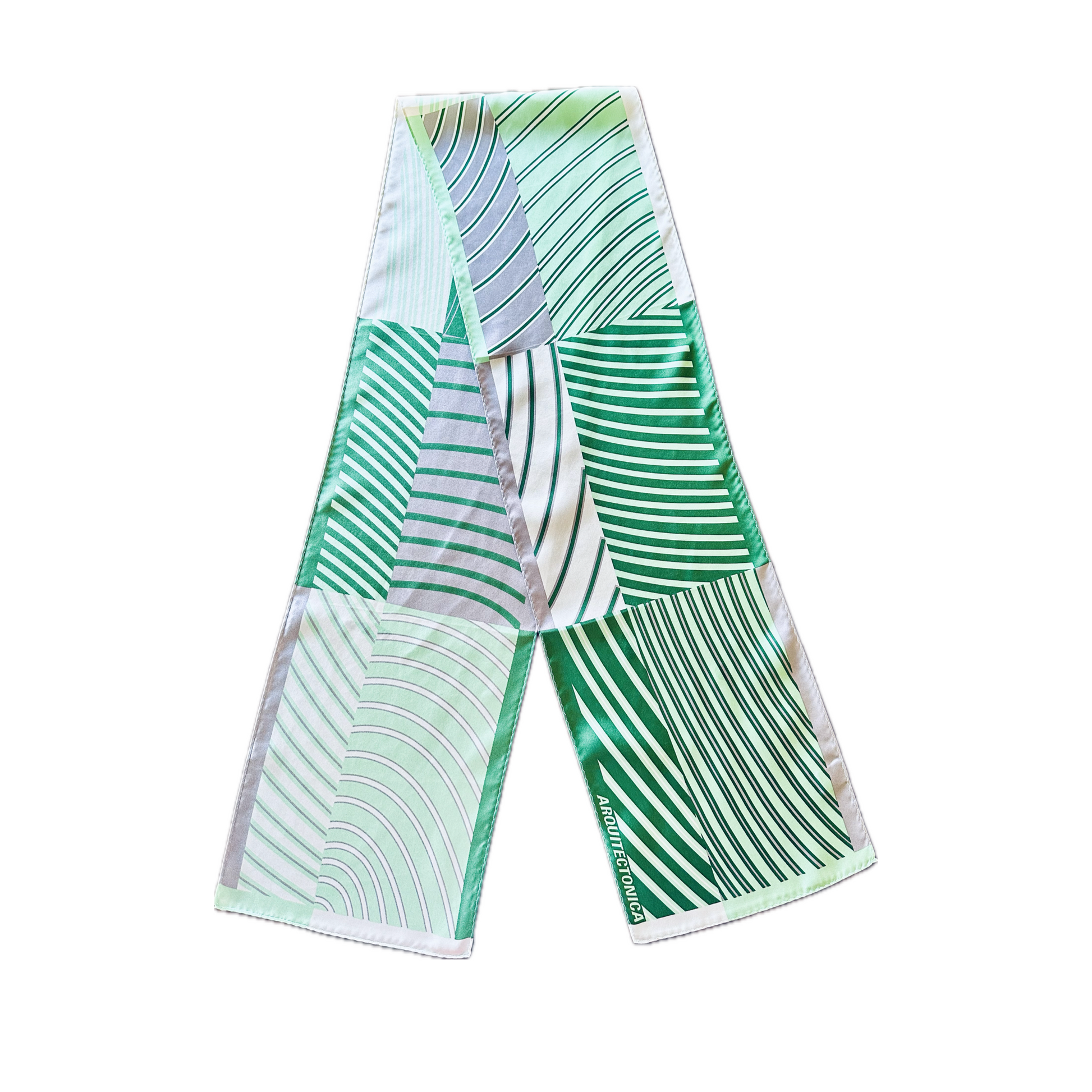 Block Striped Silk Scarf Designed by Laurinda Spear in Dark Green, Light Green, Dark Grey and White