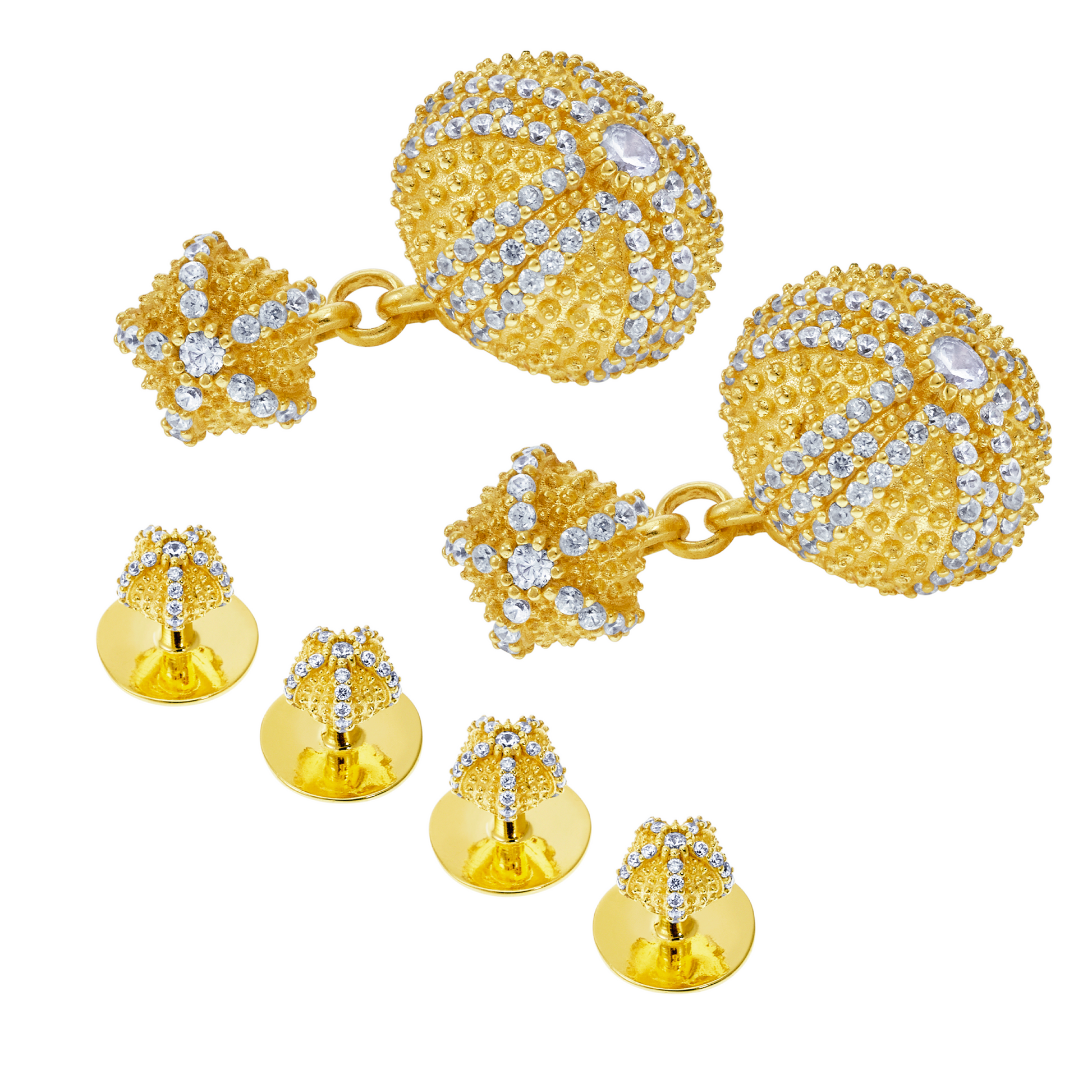 Sea Urchin Cufflinks & Studs Set in Gold-Plated Solid Sterling Silver