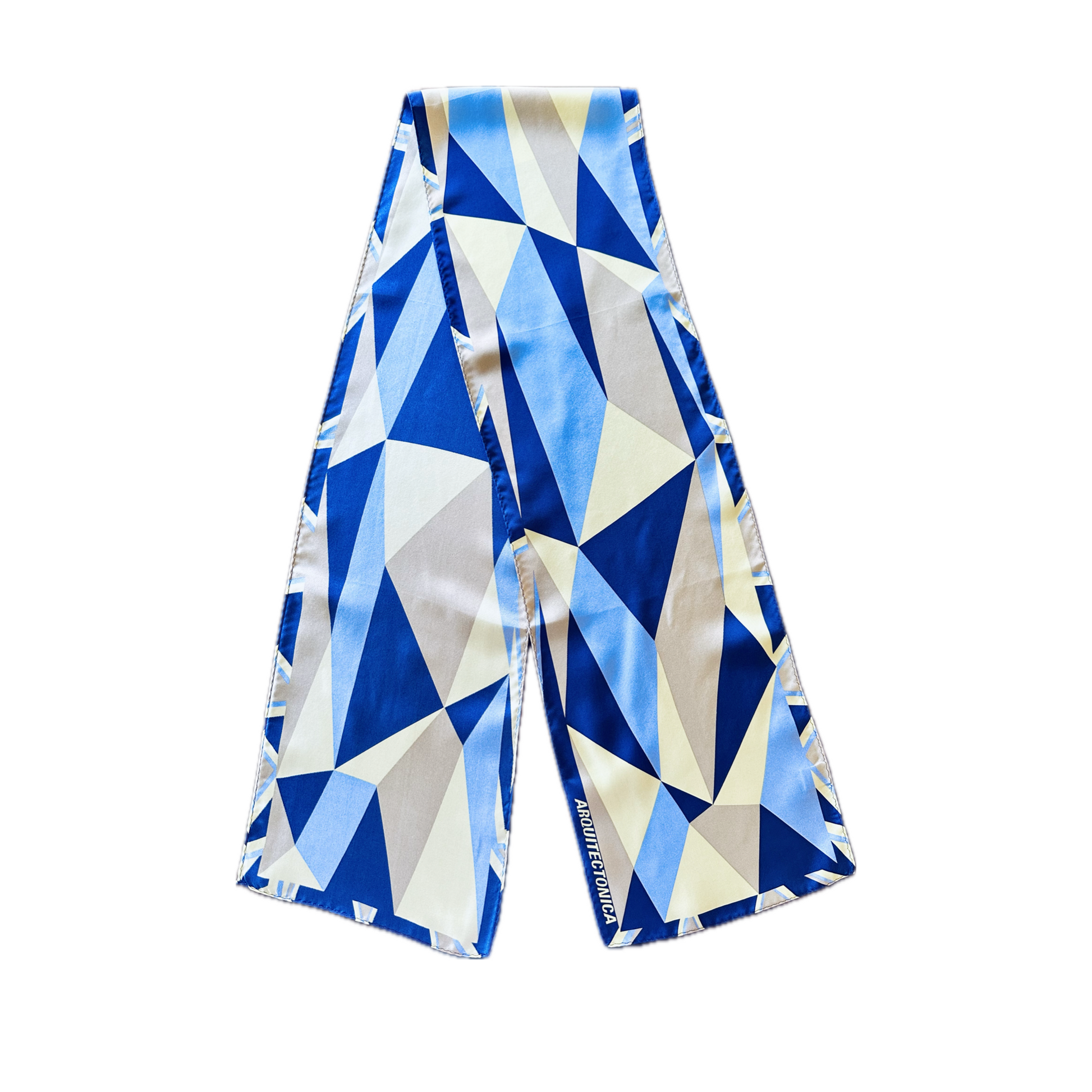 Geometric Silk Scarf Designed by Laurinda Spear in Navy, Gold, Yellow and Light Blue