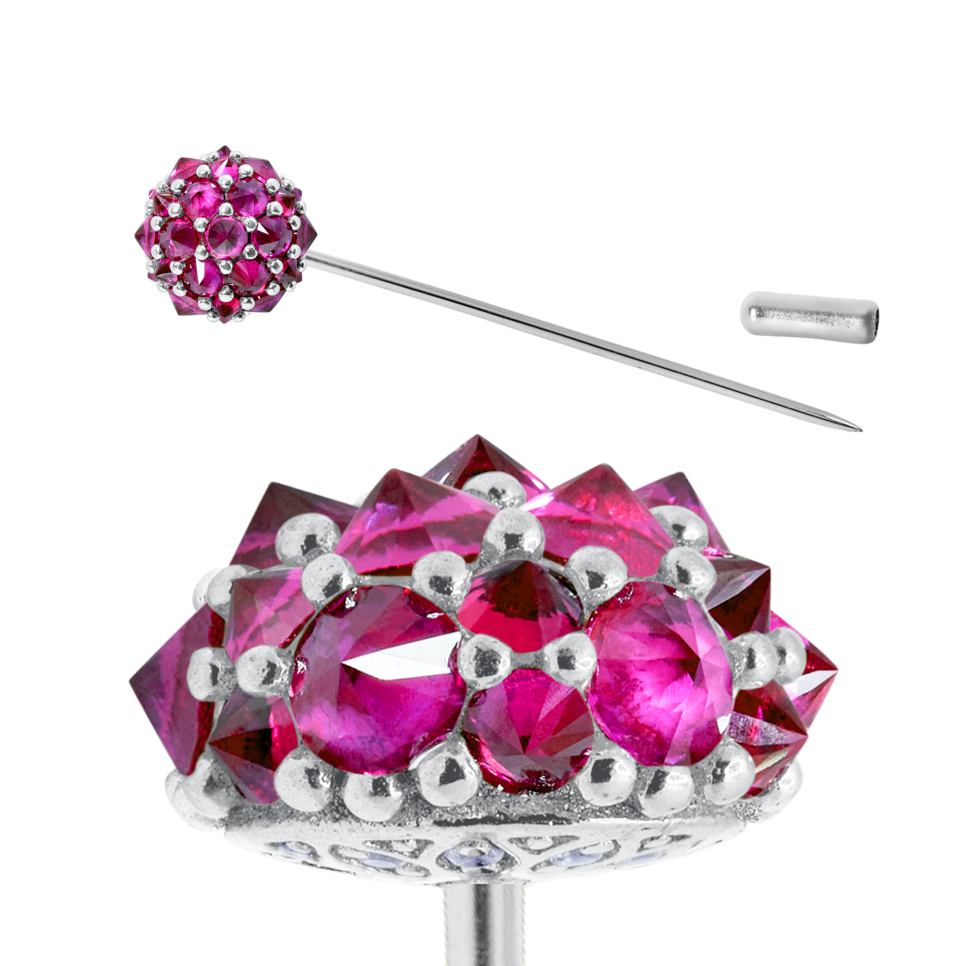 Perfectly matched manmade cubic zirconia are hand set for your lapel pin.