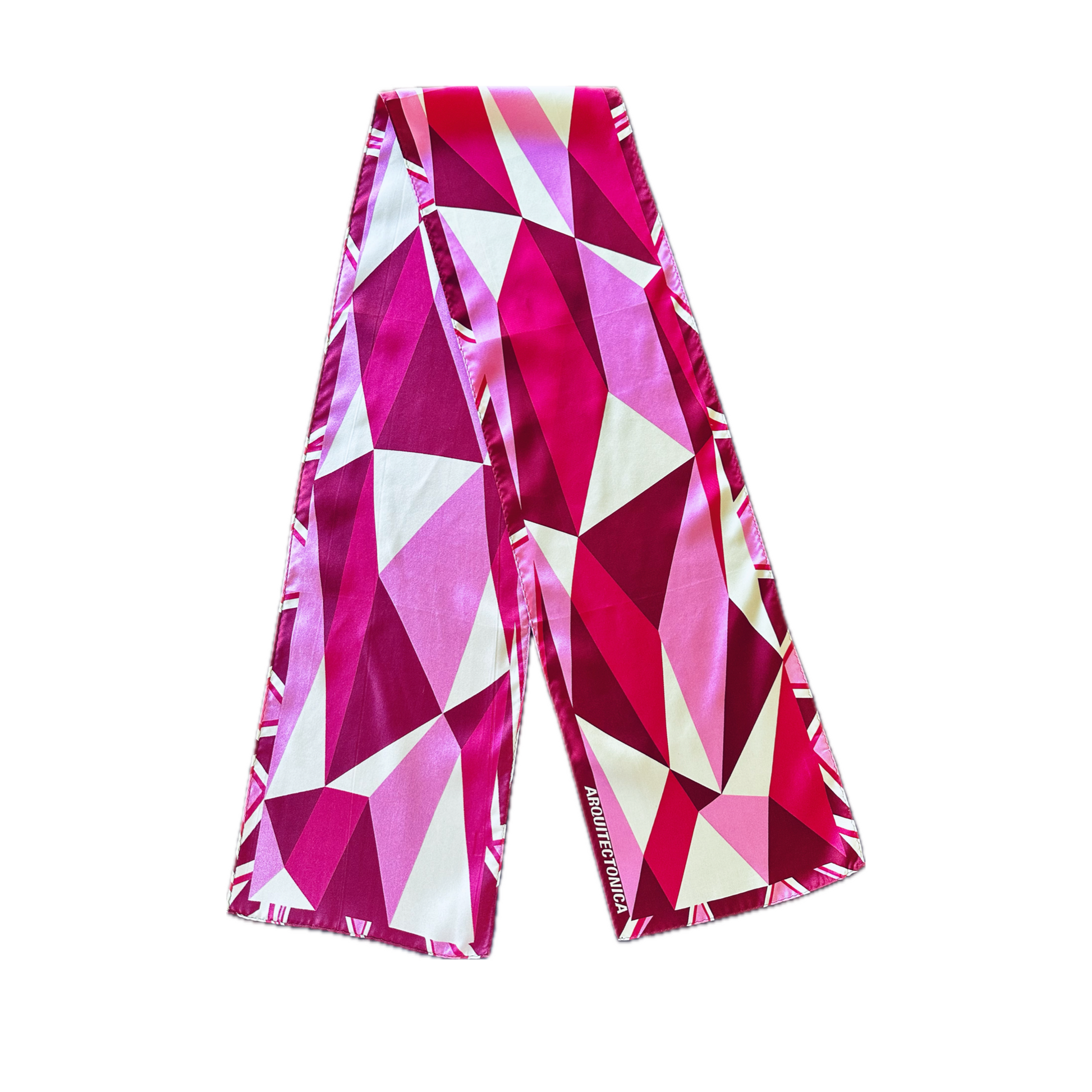 Geometric Silk Scarf Designed by Laurinda Spear in Wine, Magenta, Sage and Pink